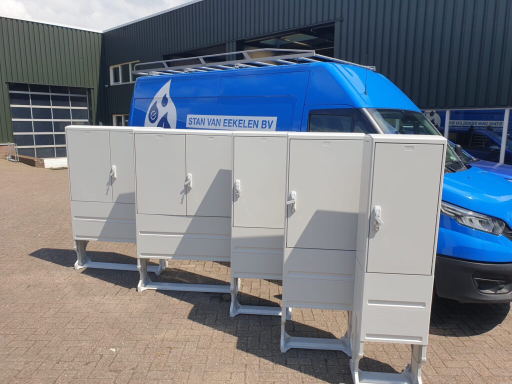 Polyester (buiten)kasten voor bijvoorbeeld de energieaansluiting of het onderbrengen van elektrotechniek.